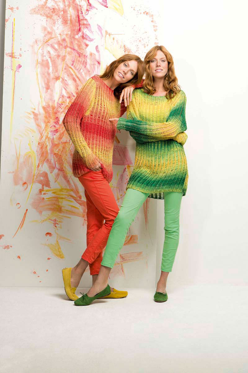 Leichtes verstricktes Baumwollgarn mit attraktiver, langrapportiger dégradé Färbung.