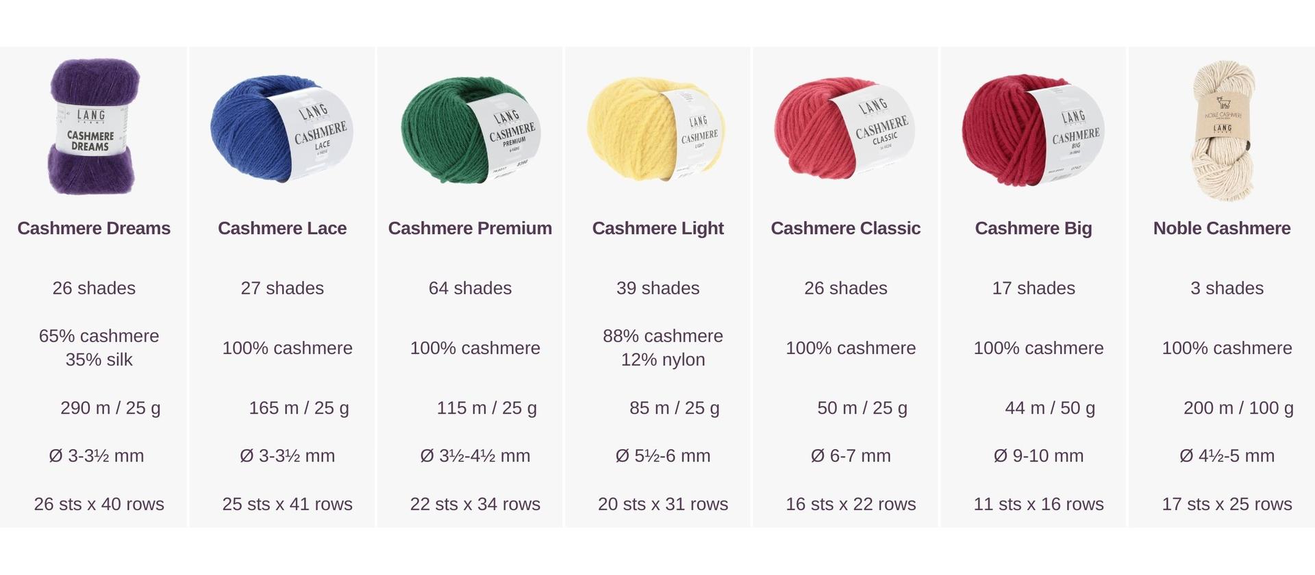 We offer one of the broadest ranges of cashmere products in the market. You will find the right cashmere yarn for any project: from a lace quality like CASHMERE DREAMS through a classic DK yarn like CASHMERE PREMIUM to something lofty and light such as CASHMERE LIGHT. And all of these in an extraordinary range of colors.