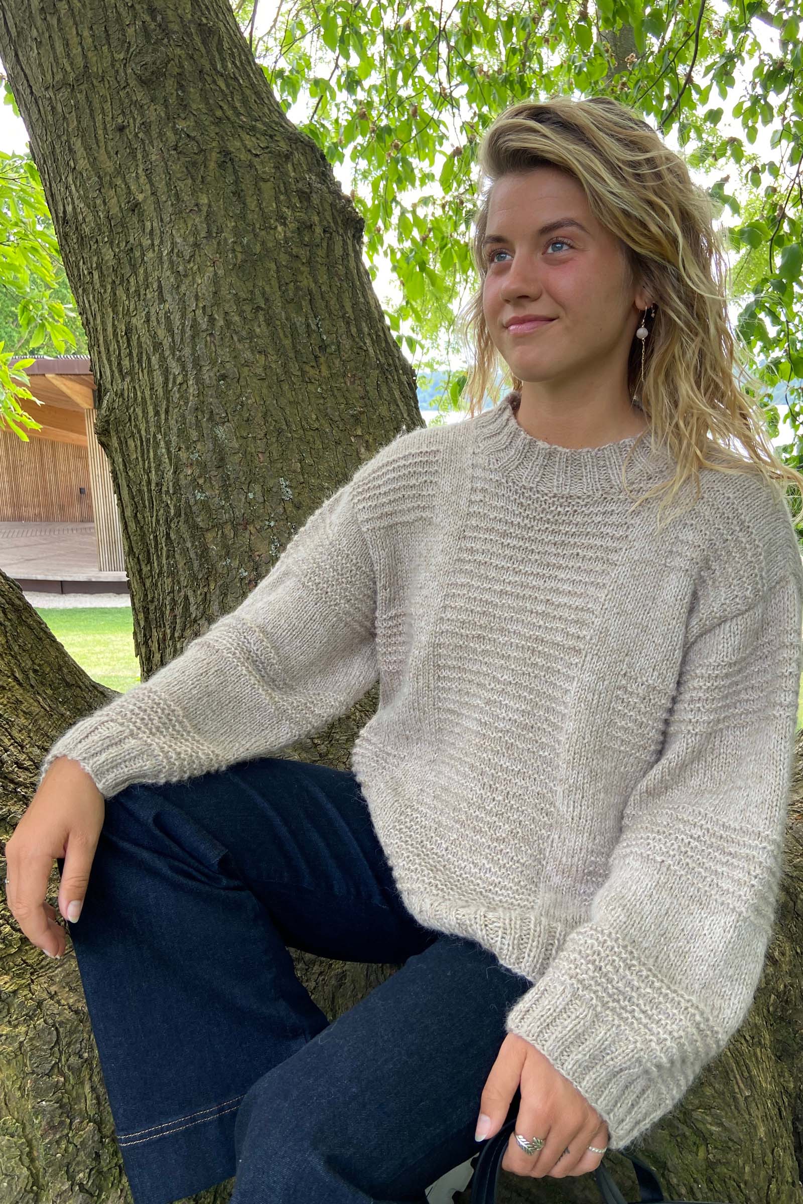 NORDIC HOLIDAY-sweateren af den danske designer Sanne Lousdal indkapsler ren hygge – ideel til at komme behageligt igennem de kolde vinterdage. Det enkle, men raffinerede spil mellem ret- og vrangmasker giver sweateren et tidløst udseende. Denne sweater omslutter dig med varm komfort og afspejler den afslappede, hjemlige charme ved en nordisk vinter.