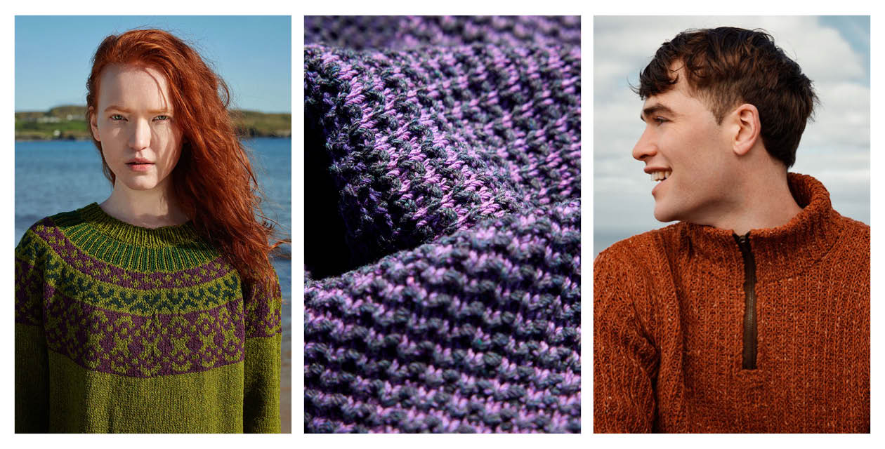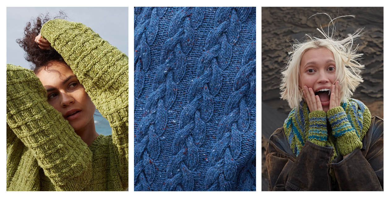 Nous utiliserons notre nouvelle qualité DONEGAL WOOLEN SPUN, un fil produit en Irlande, dont le caractère authentique et la belle harmonie de ses nuances chinées s’accordent parfaitement à ce projet. Ceux qui préfèrent un tweed classique pourront opter pour le DONEGAL TWEED+, les deux fils présentant le même échantillon.