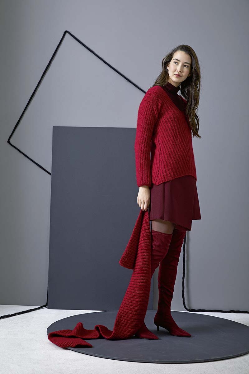 Avec ce fil, ce sont la tradition et la technologie qui se confondent. Ce fil mèche est tricoté de façon très aérée à partir de fines fibres d'alpaga. Douceur, légèreté et douce chaleur sont ce qui caractérise le mieux les ouvrages en LUNA.