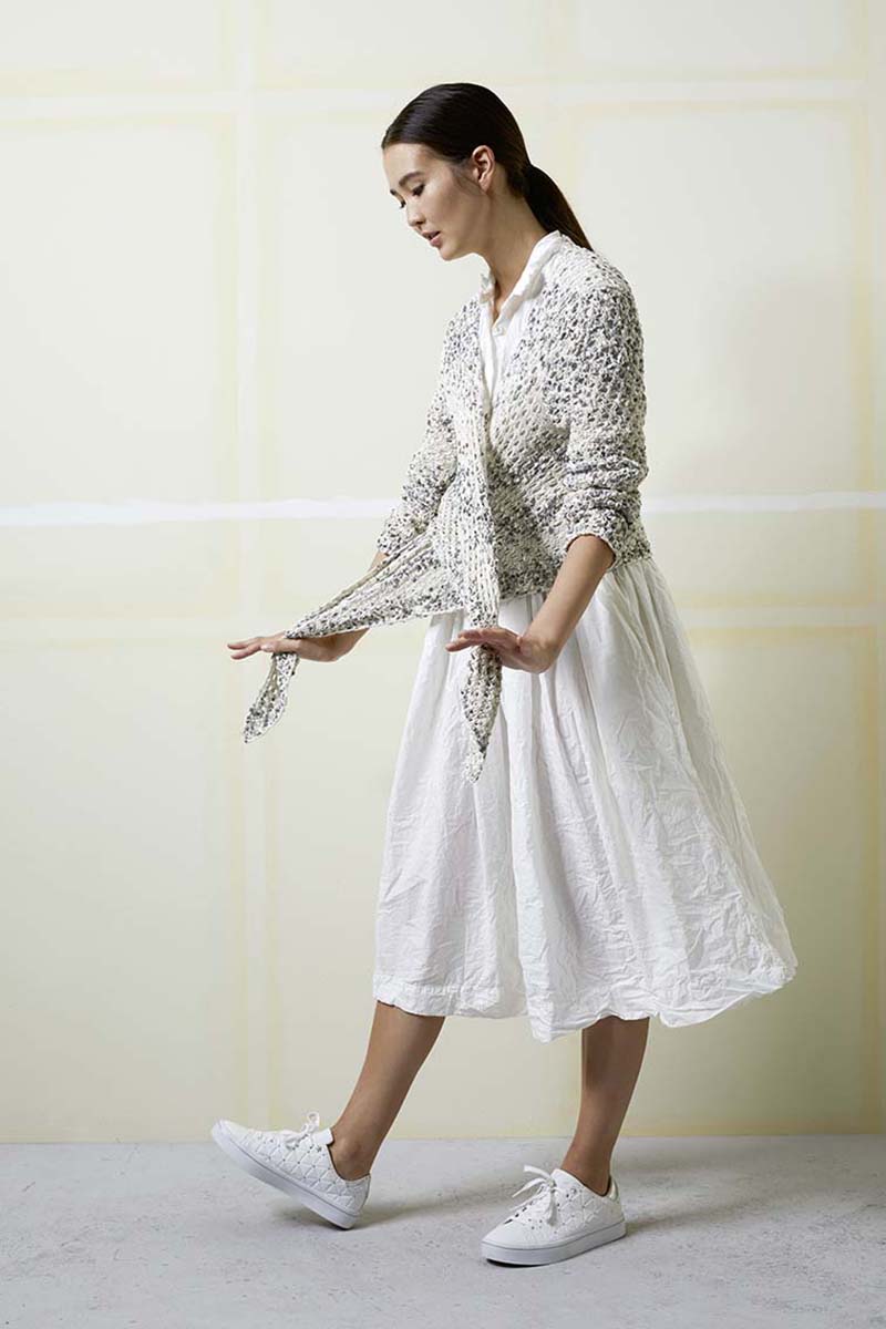 Telle l'écume d'une vague, les touches de couleur multicolores viennent finir leur course sur ce fil de coton. Filé dans un coton fin, ce fil est très agréable à porter et se tricote très bien.