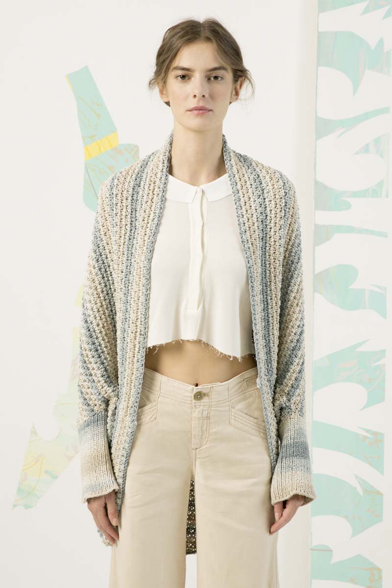 Le fil tendance SOL existe maintenant aussi avec de la soie ! C'est le même procédé de fabrication qui est utilisé mais sur deux fontures. Le fil est enrichi en soie, qui lui donne un caractère encore plus particulier. Les merveilleux imprimés en dégradé font honneur aux nobles ambitions de ce fils avec de délicates combinaisons de couleurs.